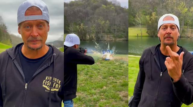 他沮喪又激動,眼含淚水地說,他想傳達一個清晰簡潔的信息,然后轉身用MP5沖鋒槍射擊遠處的百威啤酒。“去他媽的百威,去他媽的安海斯-布希!” Kid Rock舉中指罵道。