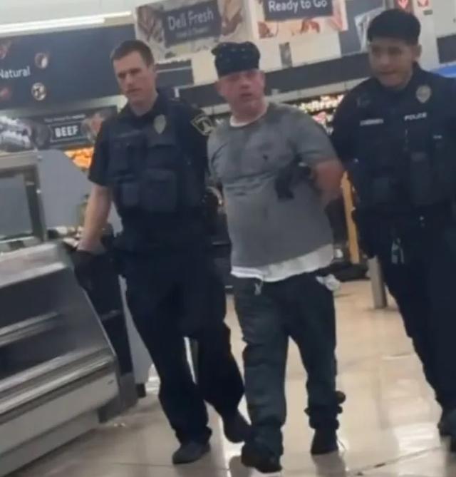 兩名警察沖過來逮捕了男子,他帶著驕傲的表情離開了。
