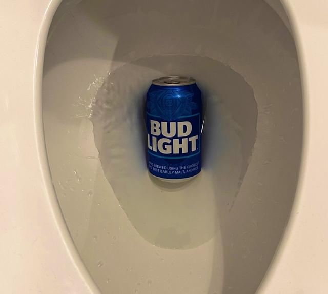 還有人把百威丟到馬桶里,罵它屎都不如(這應該只是做做樣子,畢竟沖不下去)。
