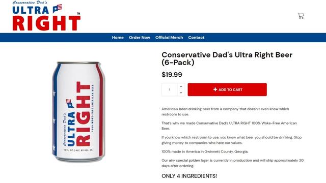 他還模仿Kid Rock,把百威當靶子,每一瓶都射準了。一個有生意頭腦的男子成立新公司,售賣名為“保守派老爸的極右啤酒”。